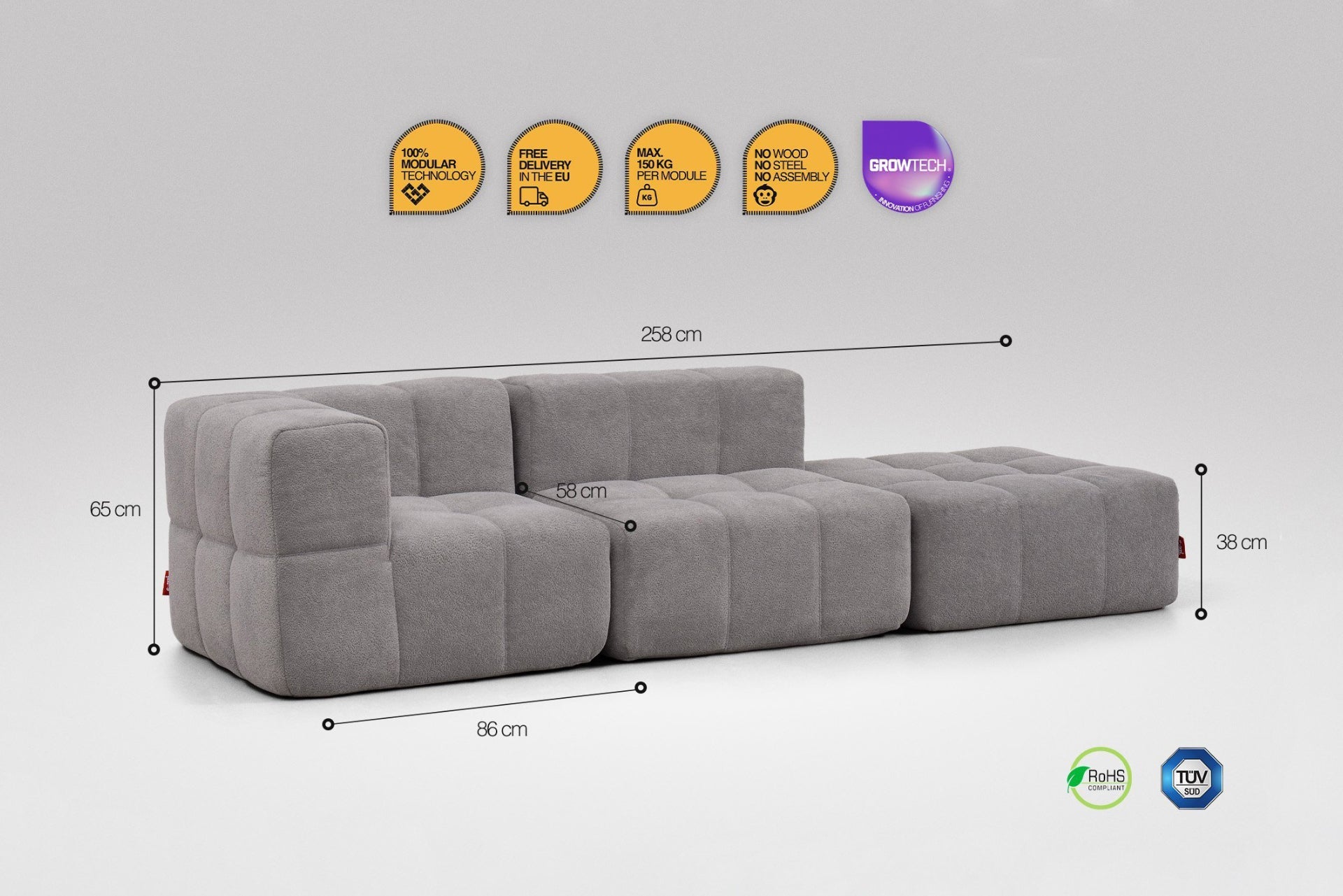 Moduly lze jednoduše propojit, takže drží stabilně vedle sebe – žádné rozjíždění, jen pevné pohodlí.