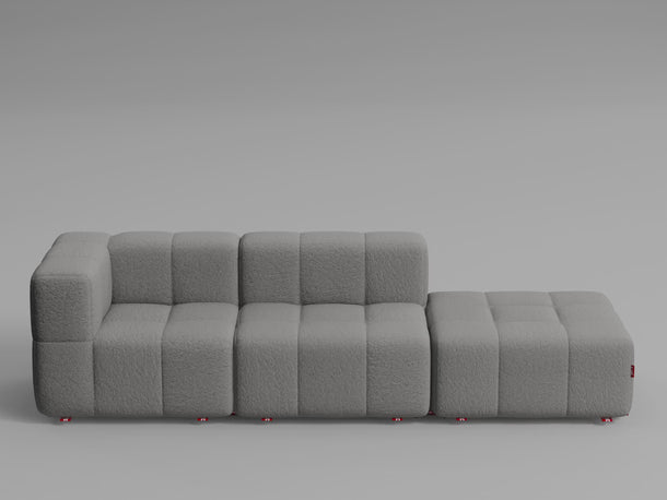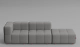 Taburet, středový a rohový díl lze jednoduše postavit vedle sebe – není potřeba žádné upevnění, pohovka díky své váze a konstrukci zůstává stabilně pohromadě.