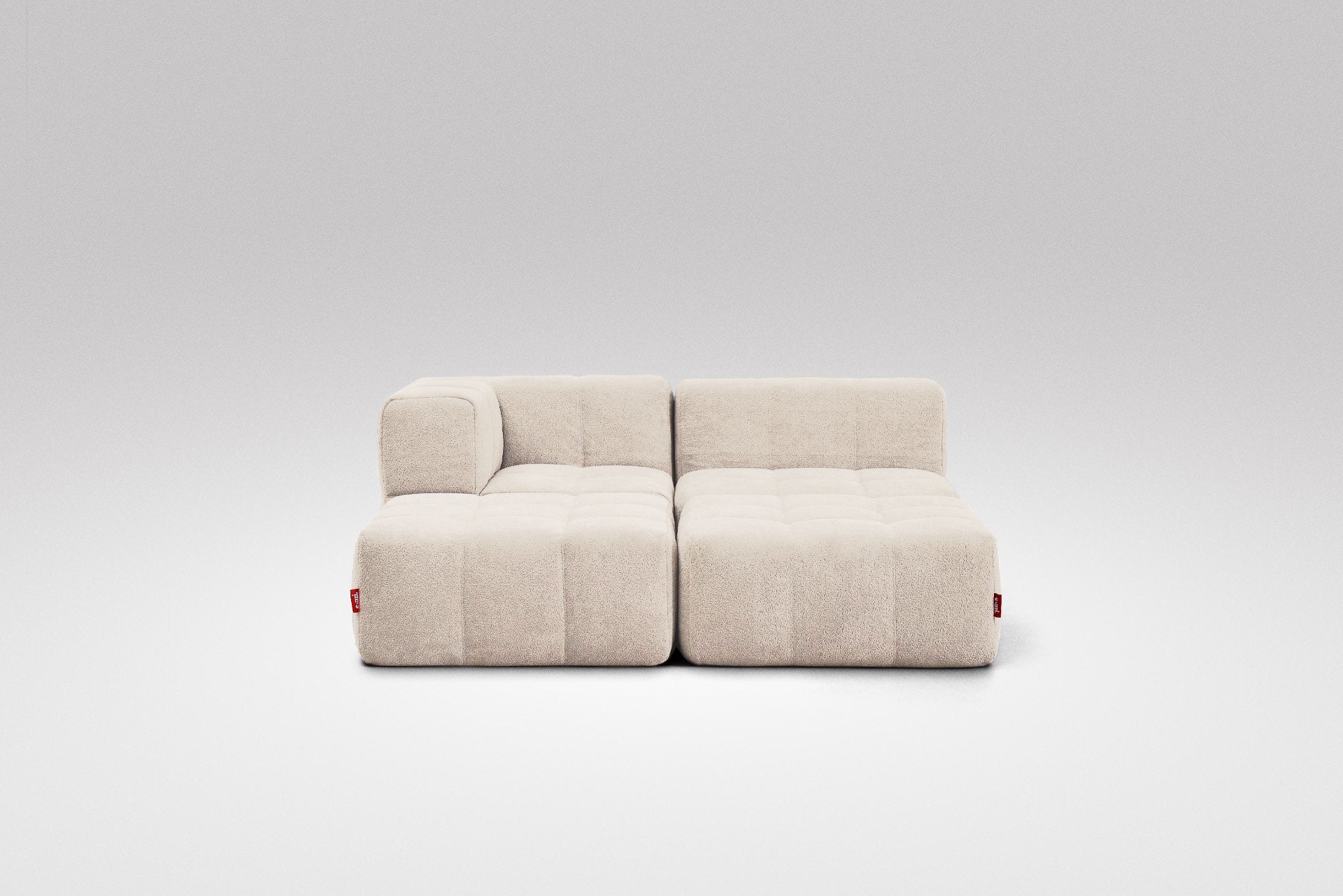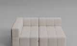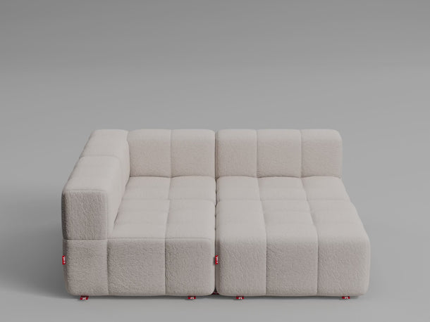 Taburet, středový a rohový díl lze jednoduše postavit vedle sebe – není potřeba žádné upevnění, pohovka díky své váze a konstrukci zůstává stabilně pohromadě.