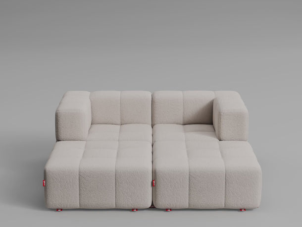 Taburet, středový a rohový díl lze jednoduše postavit vedle sebe – není potřeba žádné upevnění, pohovka díky své váze a konstrukci zůstává stabilně pohromadě.