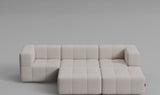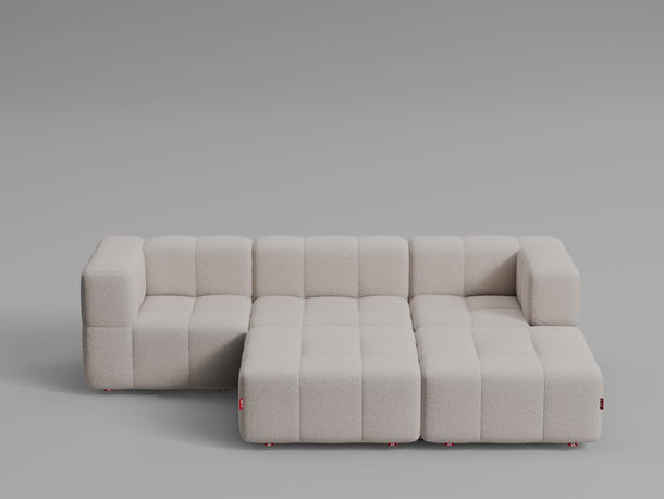 Taburet, středový a rohový díl lze jednoduše postavit vedle sebe – není potřeba žádné upevnění, pohovka díky své váze a konstrukci zůstává stabilně pohromadě.