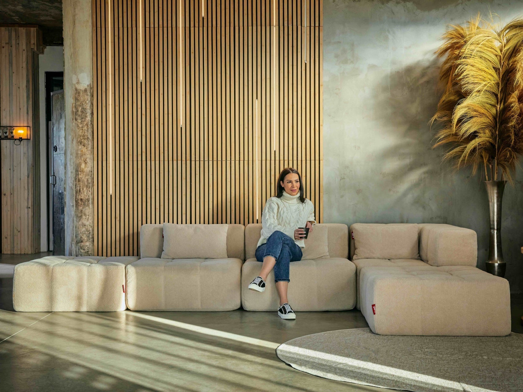 Moduly se snadno spojují , takže pevně drží pohromadě – žádné klouzání, jen spolehlivé pohodlí. Jejich protiskluzový povrch a ideální hmotnost zajišťují, že pohovka zůstane na místě, a přesto ji můžete snadno přestavět, pokud chcete vytvořit novou atmosféru.