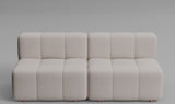 Taburet, středový a rohový díl lze jednoduše postavit vedle sebe – není potřeba žádné upevnění, pohovka díky své váze a konstrukci zůstává stabilně pohromadě.