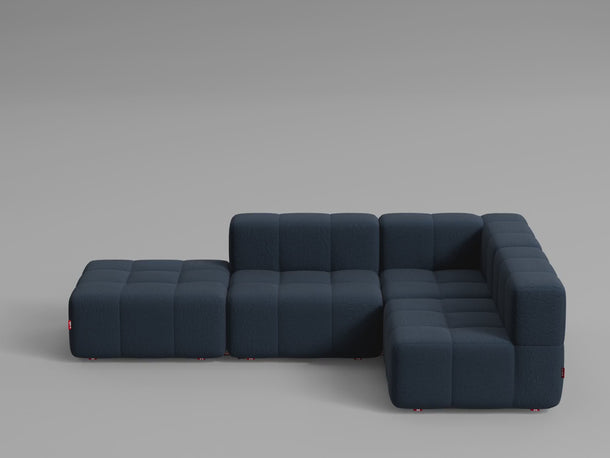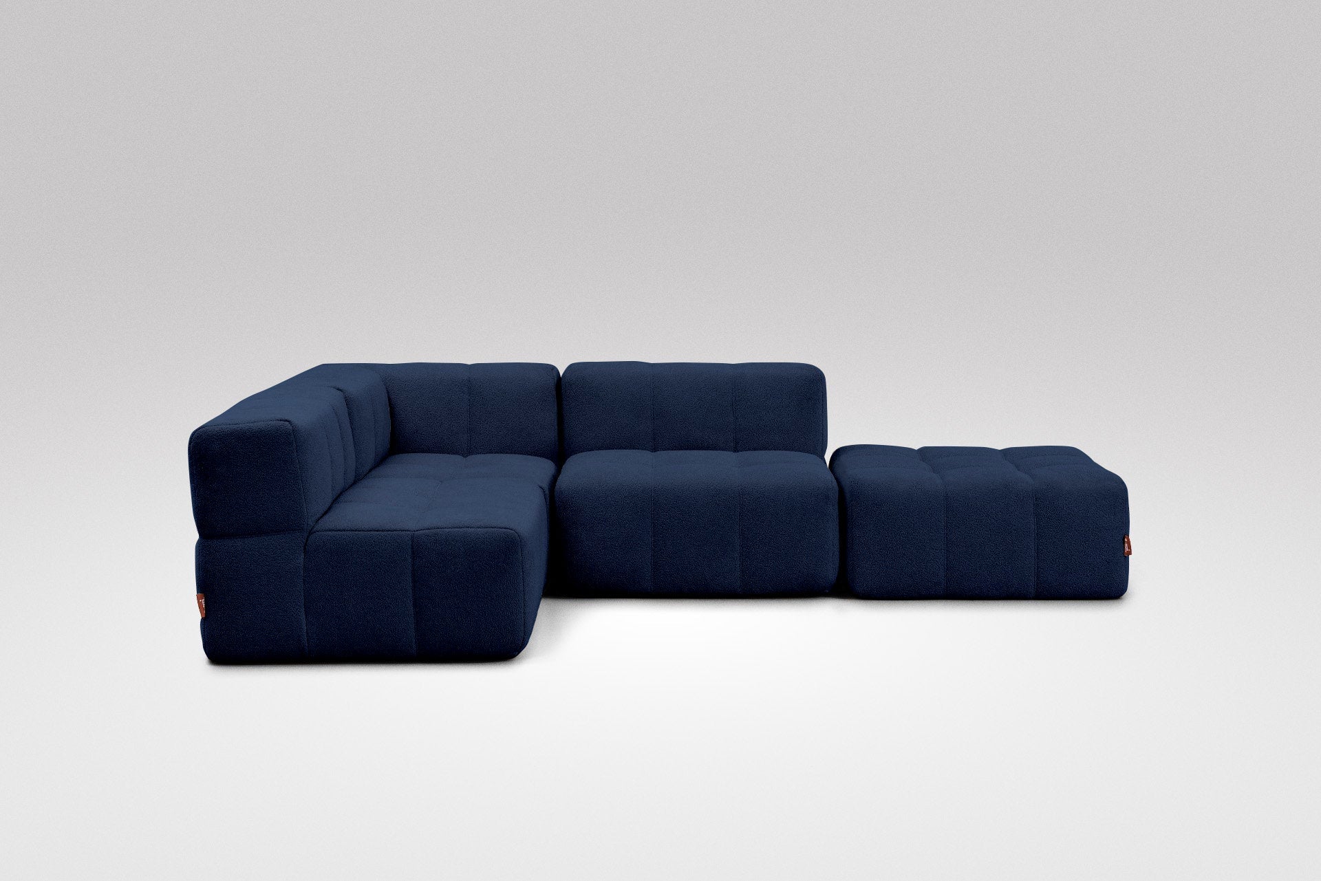 A modulok külön-külön dobozban érkeznek, így könnyen mozgathatók szűkebb lépcsőházban vagy ajtón keresztül is. A lábtartót, a közép- és a sarokelemet egyszerűen egymás mellé lehet helyezni – nincs szükség rögzítésre, a kanapé a súlyából és kialakításából adódóan stabilan egyben marad.