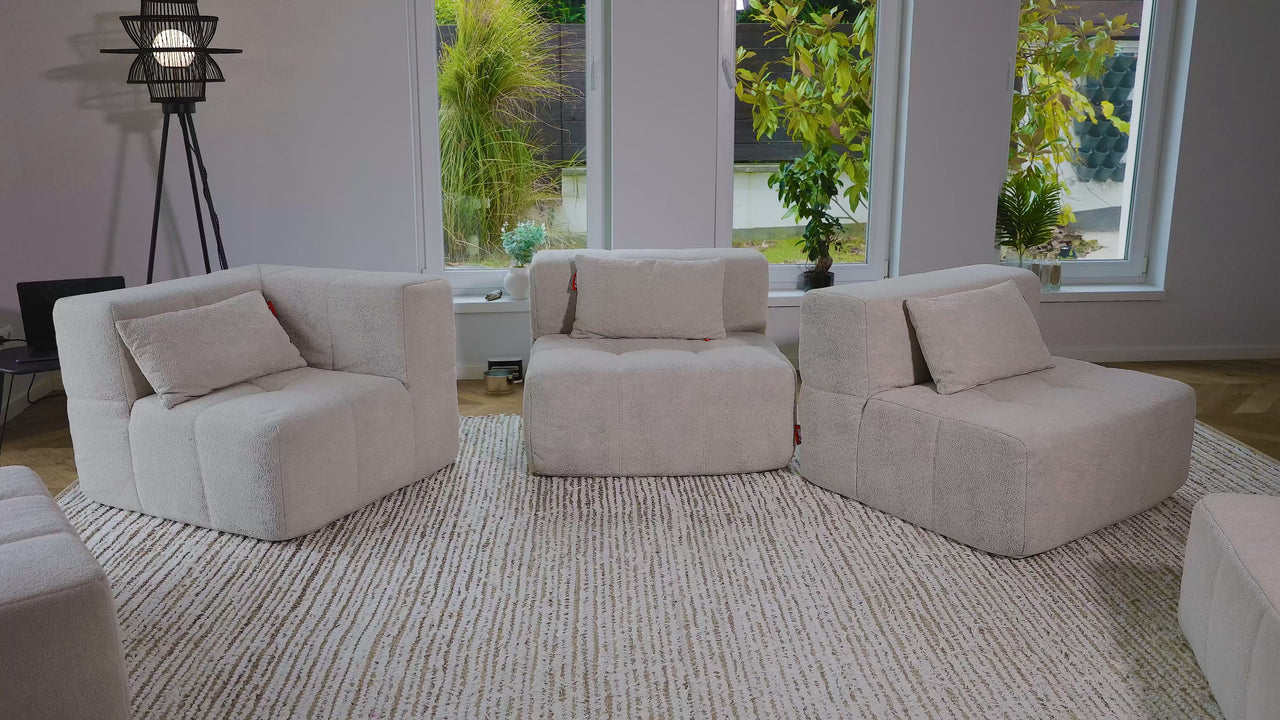 A modulok egyszerűen összekapcsolhatók, így stabilan tartanak egymás mellett – nincs szétcsúszás, csak masszív kényelem. Csúszásgátló felületük és ideális súlyuk gondoskodik róla, hogy a kanapé a helyén maradjon, mégis könnyedén átrendezhesd, ha új hangulatra vágysz.
