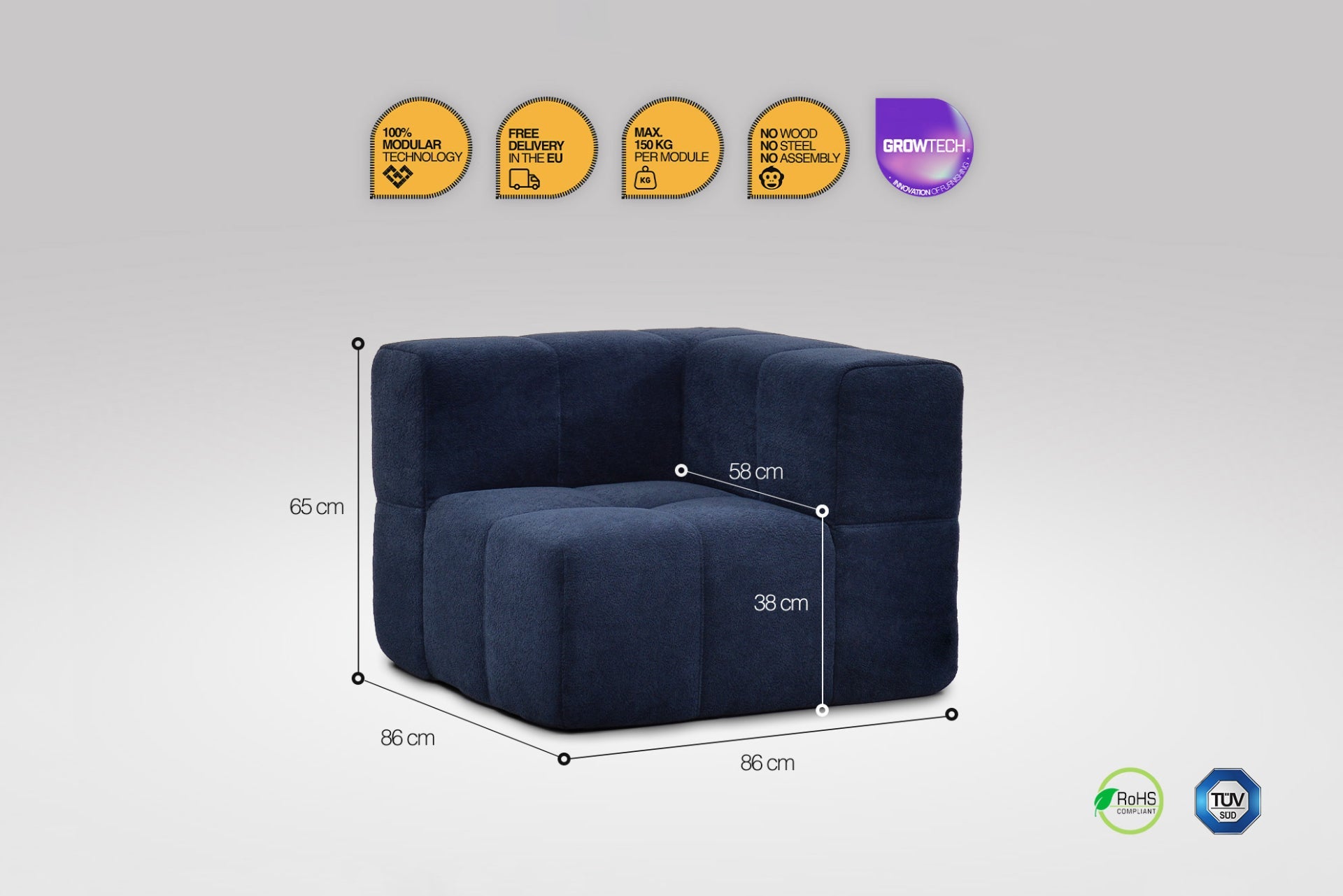 A modulok egyszerűen összekapcsolhatók, így stabilan tartanak egymás mellett – nincs szétcsúszás, csak masszív kényelem. Csúszásgátló felületük és ideális súlyuk gondoskodik róla, hogy a kanapé a helyén maradjon, mégis könnyedén átrendezhesd, ha új hangulatra vágysz.