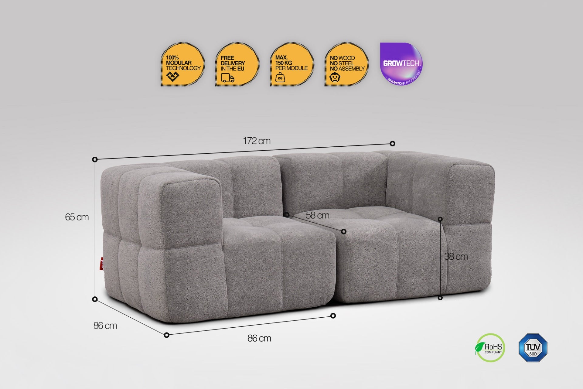 Moduly lze jednoduše propojit, takže drží stabilně vedle sebe – žádné rozjíždění, jen pevné pohodlí.