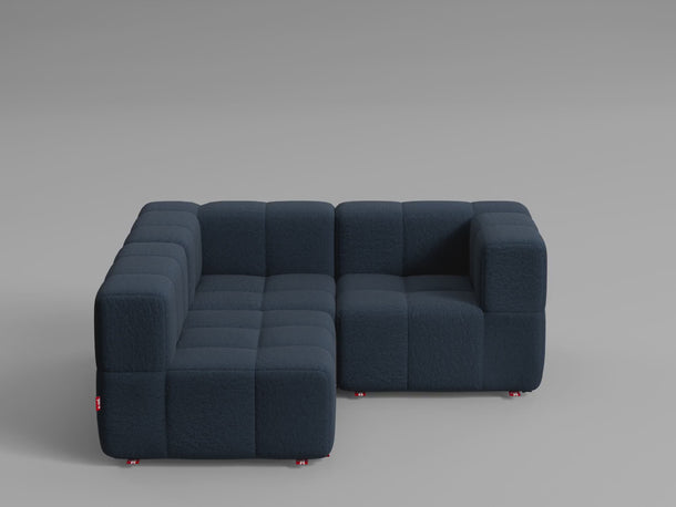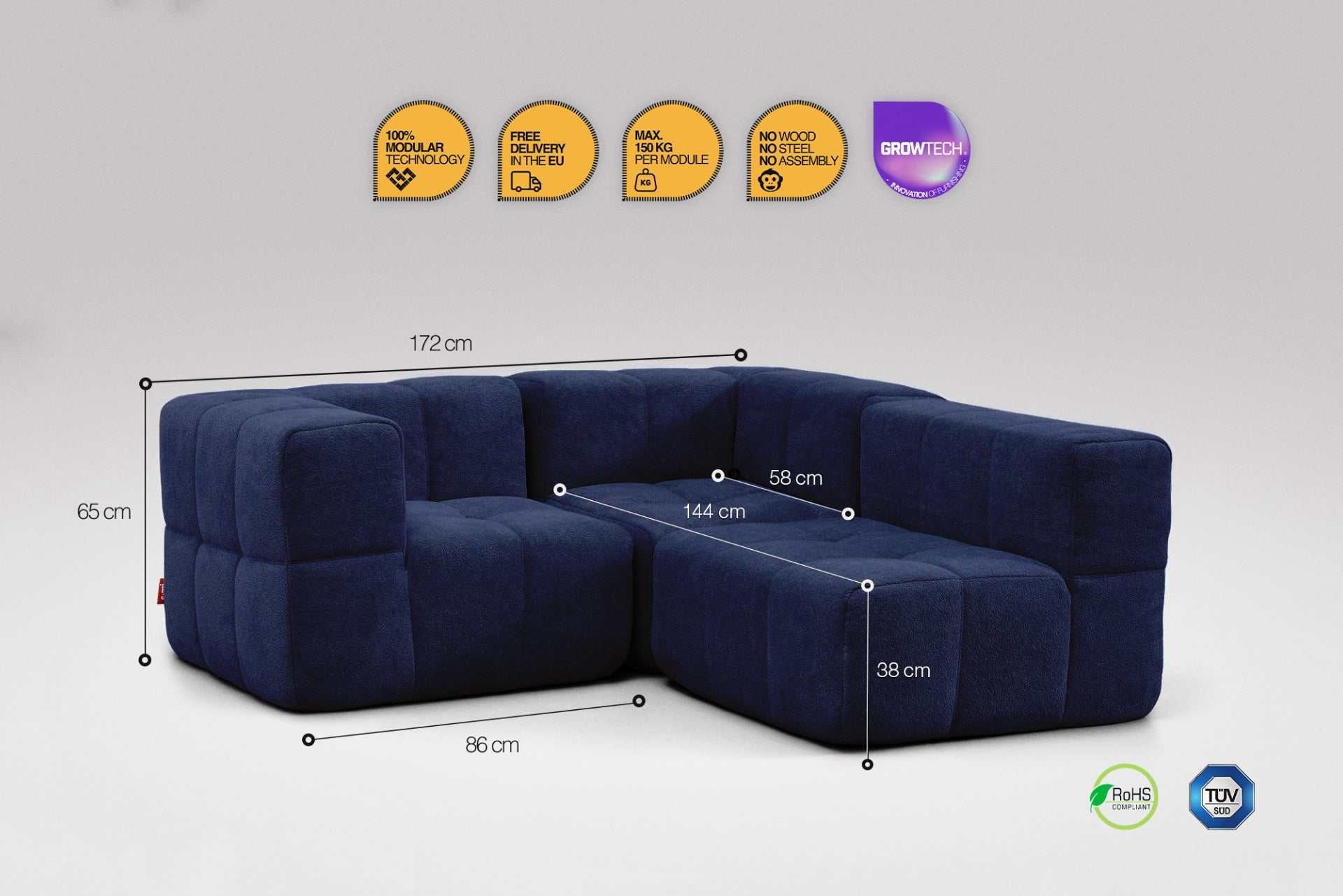 Taburet, středový a rohový díl lze jednoduše postavit vedle sebe – není potřeba žádné upevnění, pohovka díky své váze a konstrukci zůstává stabilně pohromadě.