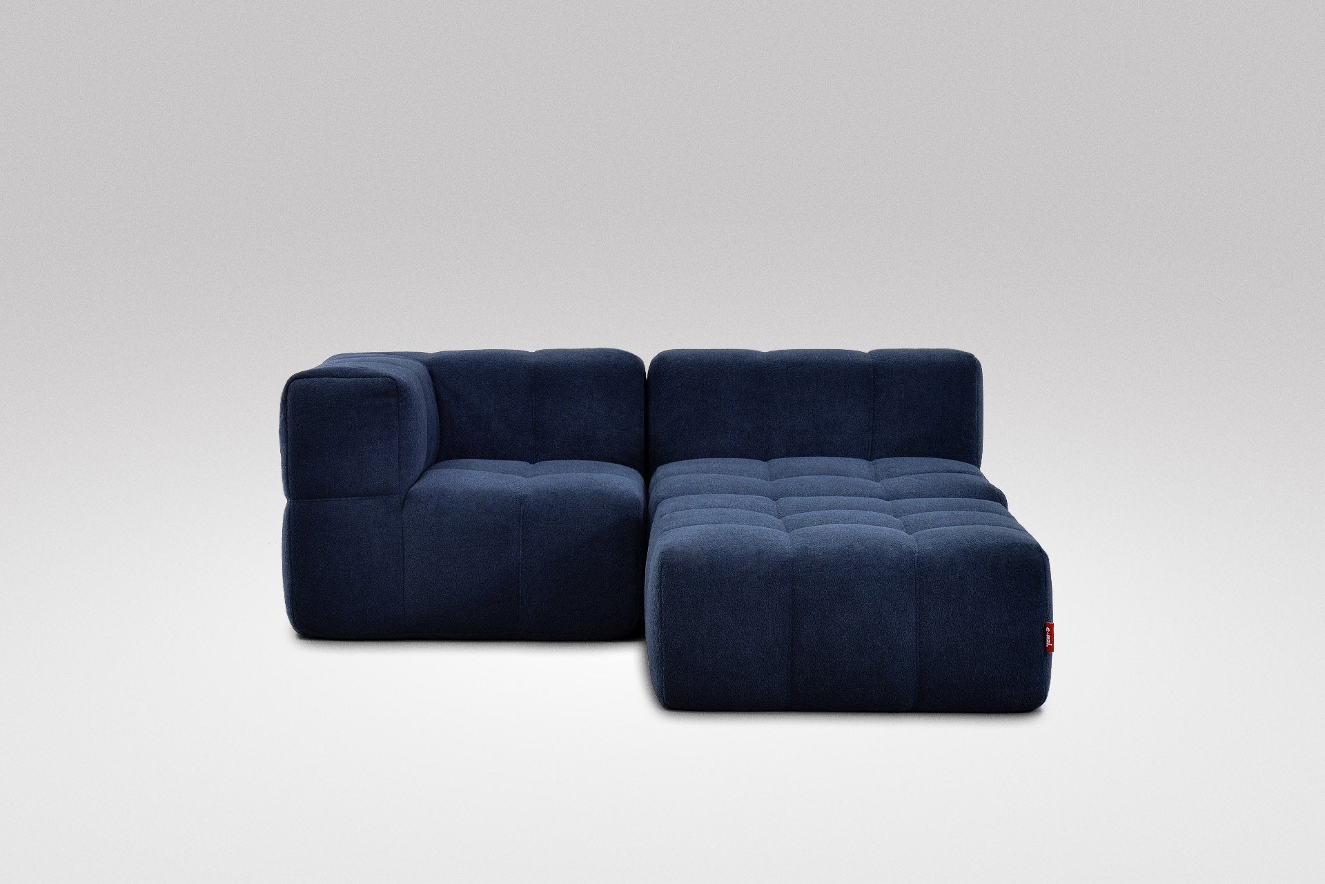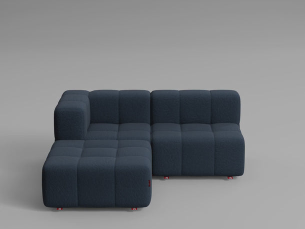 Taburet, středový a rohový díl lze jednoduše postavit vedle sebe – není potřeba žádné upevnění, pohovka díky své váze a konstrukci zůstává stabilně pohromadě.