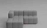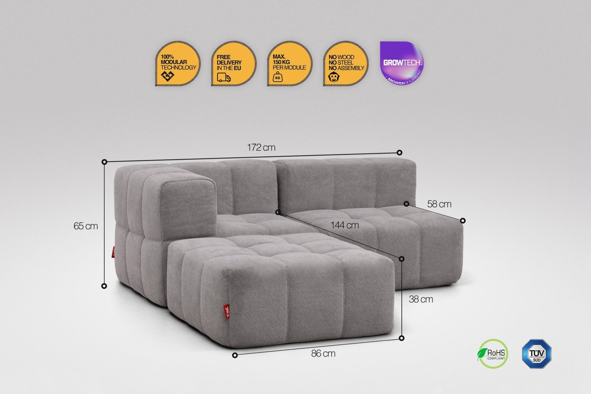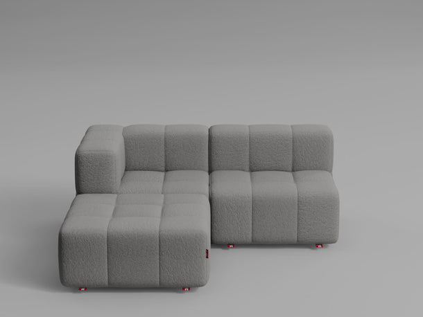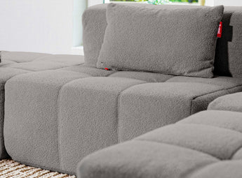 Taburet, středový a rohový díl lze jednoduše postavit vedle sebe – není potřeba žádné upevnění, pohovka díky své váze a konstrukci zůstává stabilně pohromadě.