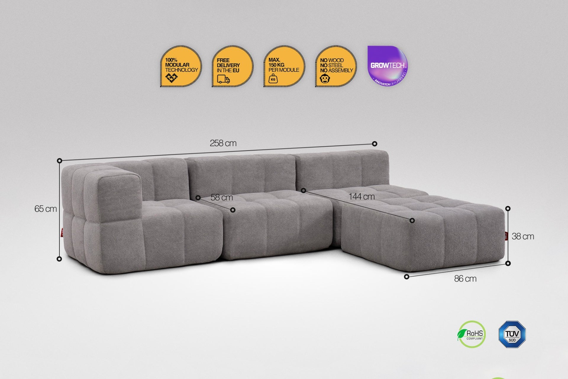 Moduly lze jednoduše propojit, takže drží stabilně vedle sebe – žádné rozjíždění, jen pevné pohodlí.