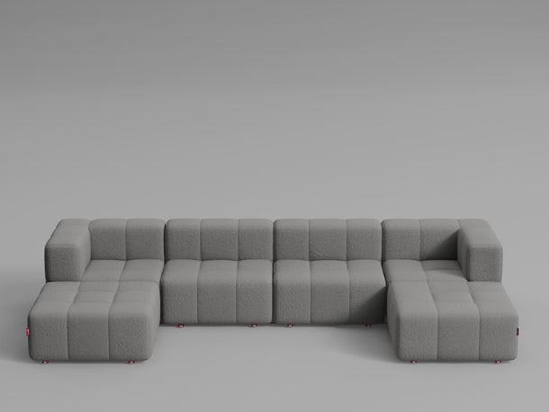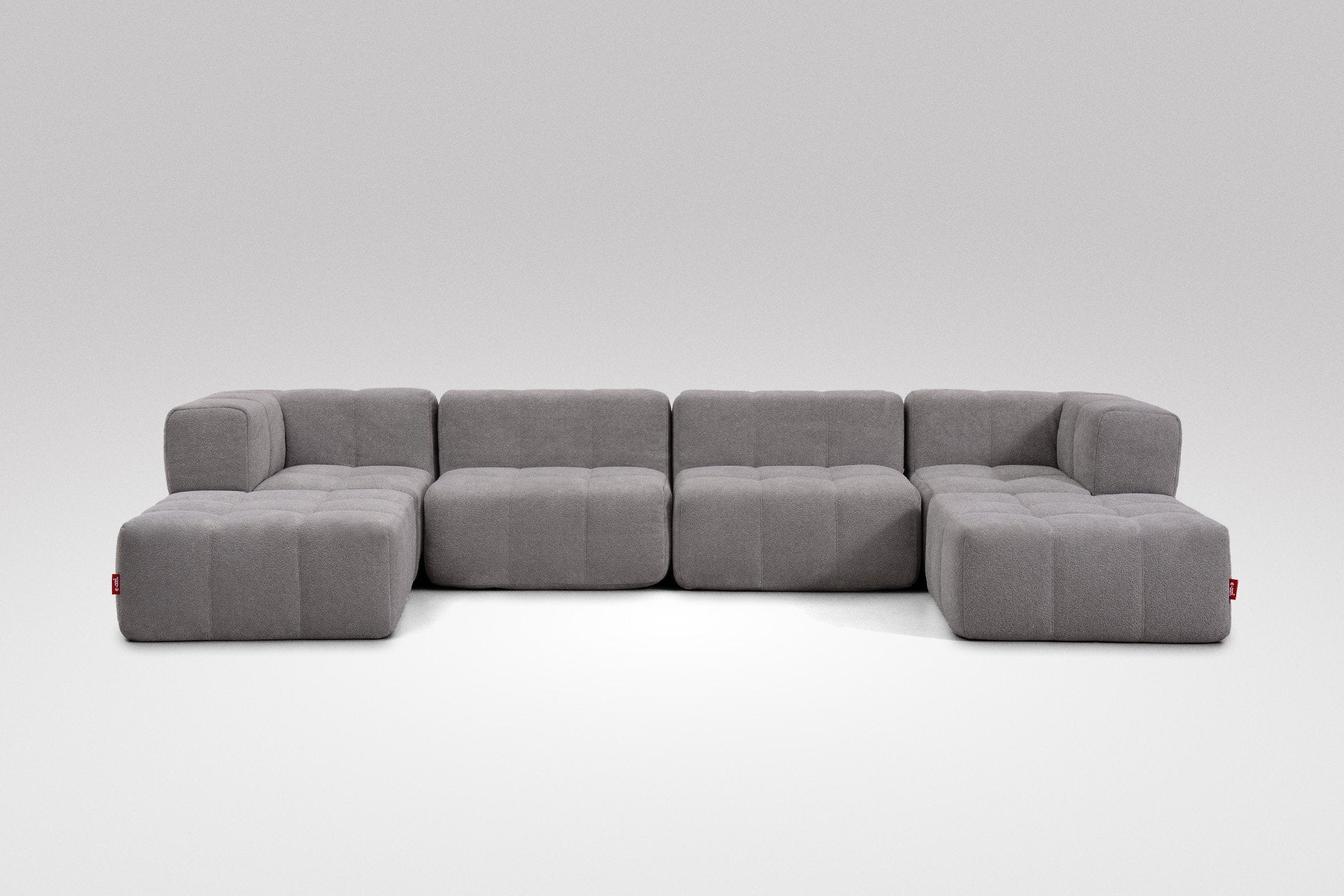 Taburet, středový a rohový díl lze jednoduše postavit vedle sebe – není potřeba žádné upevnění, pohovka díky své váze a konstrukci zůstává stabilně pohromadě.