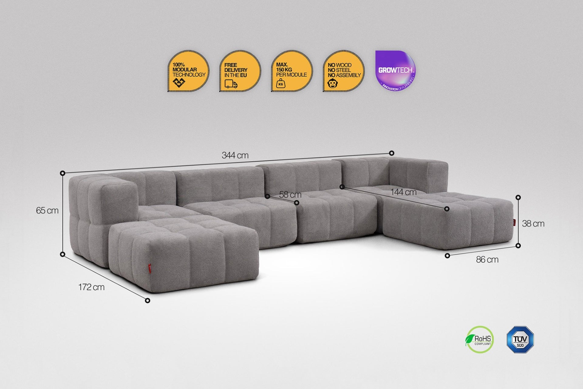 Moduly lze vzájemně upevnit – zabrání se tak rozjíždění a pohovka si zachová svůj tvar!