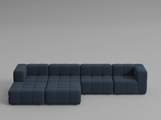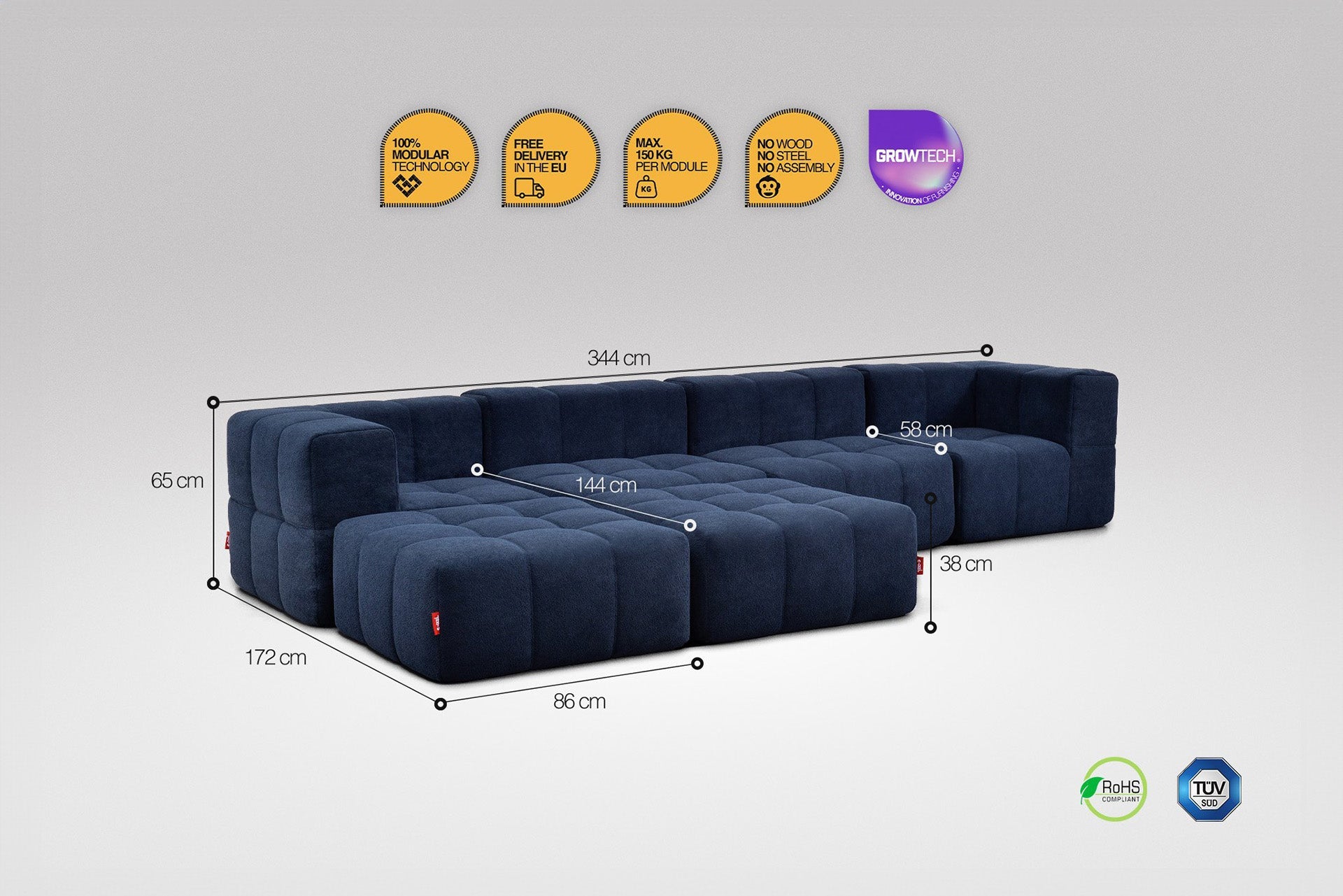 Taburet, středový a rohový díl lze jednoduše postavit vedle sebe – není potřeba žádné upevnění, pohovka díky své váze a konstrukci zůstává stabilně pohromadě.